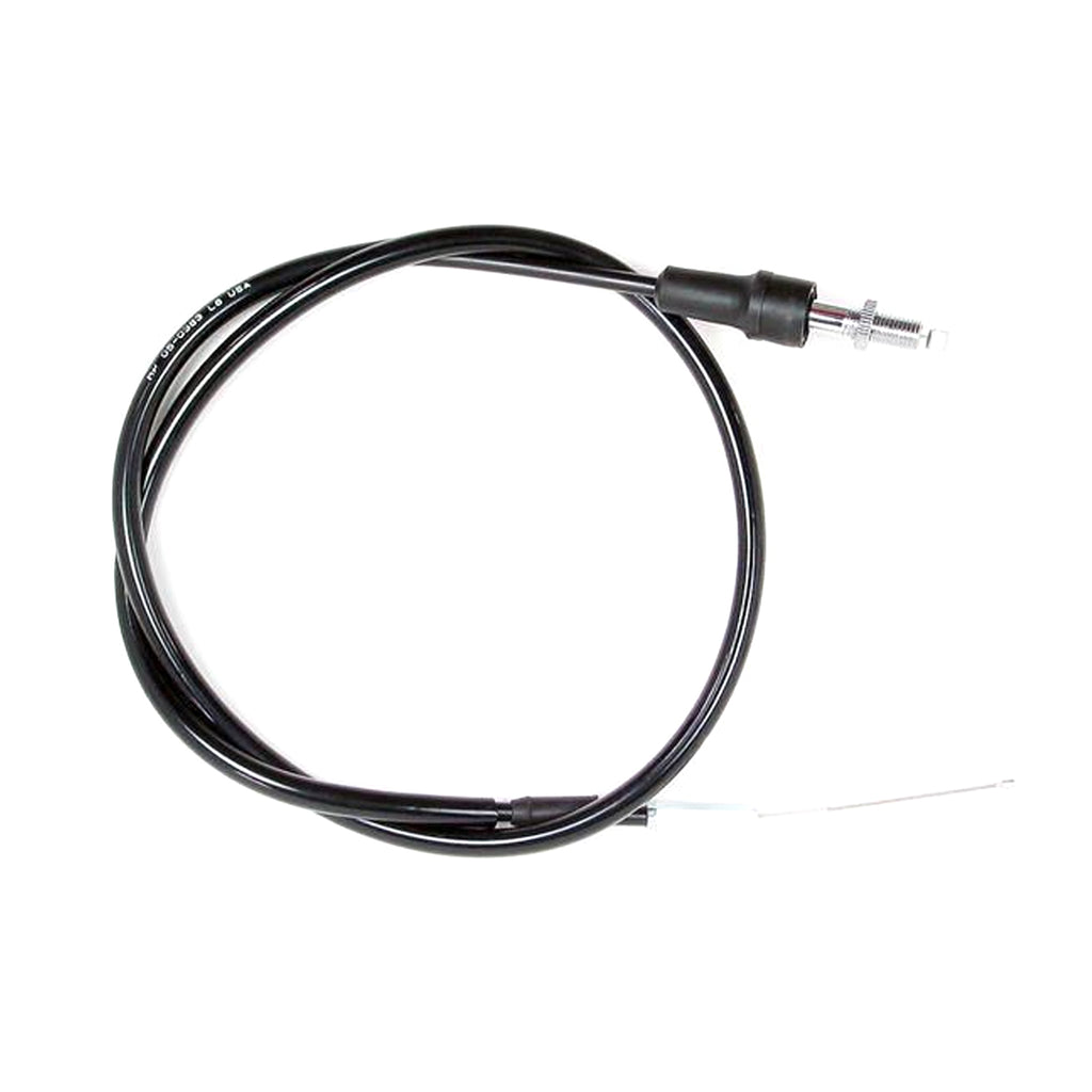Throttle (pull) cable with a black vinyl coil-wound housing and an inner nylon sleeve for smooth operation and durability, supplied in a +2" length over stock. Built to meet or exceed OEM quality standards.