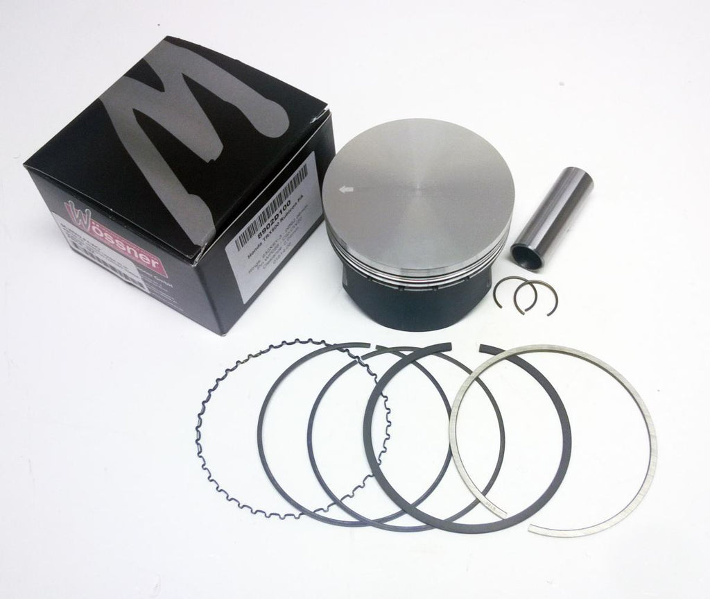 Wossner forged piston kit designed for superior strength and durability. Engineered for optimal heat transfer from the combustion chamber to the cylinder walls. The elliptical design ensures a uniform bearing surface under heat expansion, reducing localized pressure and evenly distributing thrust loads to prevent piston collapse. Manufactured in Germany for high-quality performance.